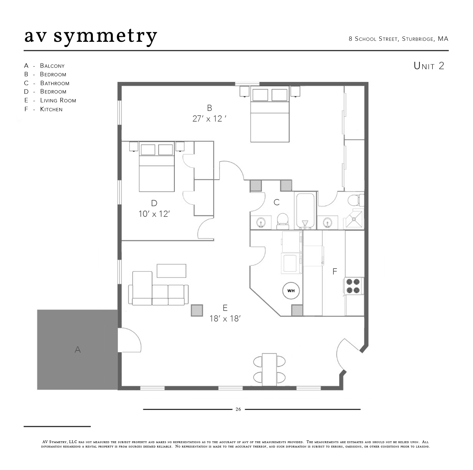 Two generously sized bedrooms measuring 27'x12', and 10'x12'.